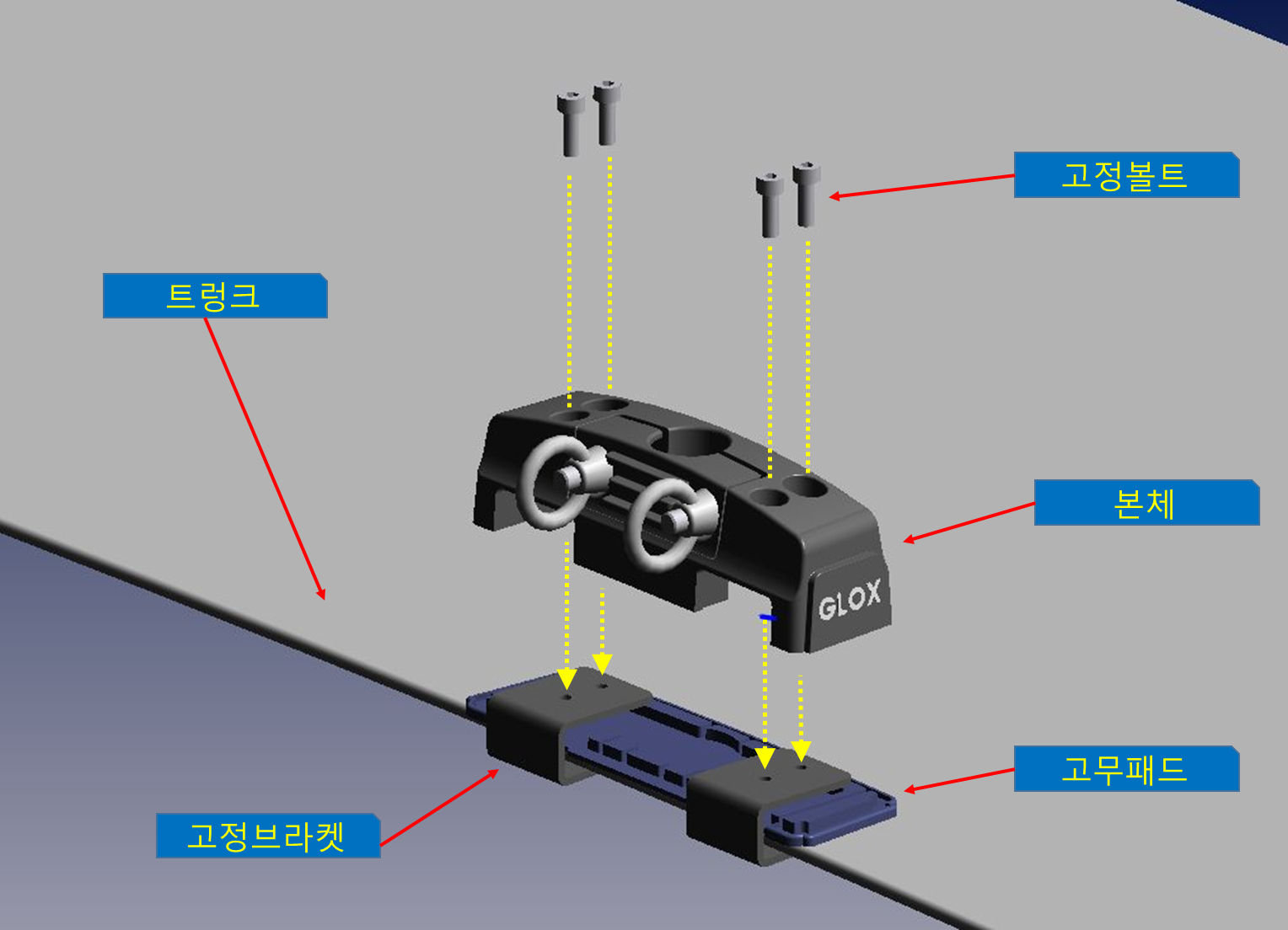 글록스 캐리어 본체는 차량에 고정되며 수십번의 설계 수정으로 강도와 결합력을 높혔습니다.