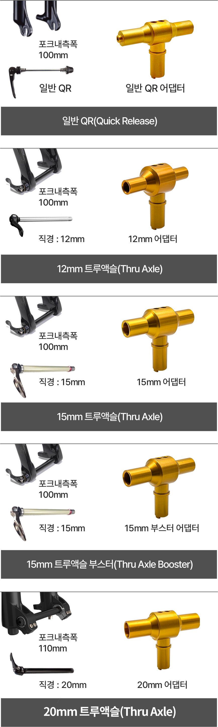 로드 및 MTB등의 자전거 포크에는 몇가지 타입의 규격이 있으며, 글록스 캐리어 어댑터는 현재 5가지 규격을 지원합니다. 자전거 포크 구분법을 사진과 함께 설명 하였습니다