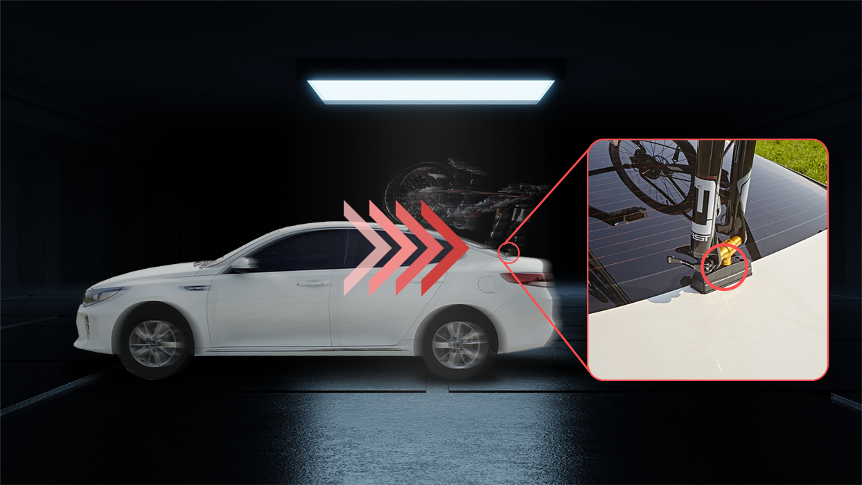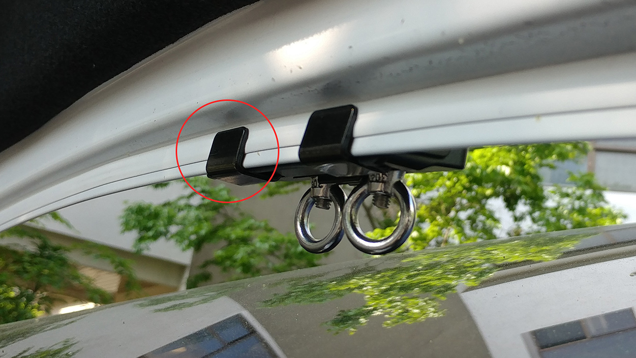 글록스 캐리어는 강철 재질의 브라켓을 차량 트렁크에 끼워 트렁크 프레임에 브라켓이 밀착되는 방식으로 고정합니다.