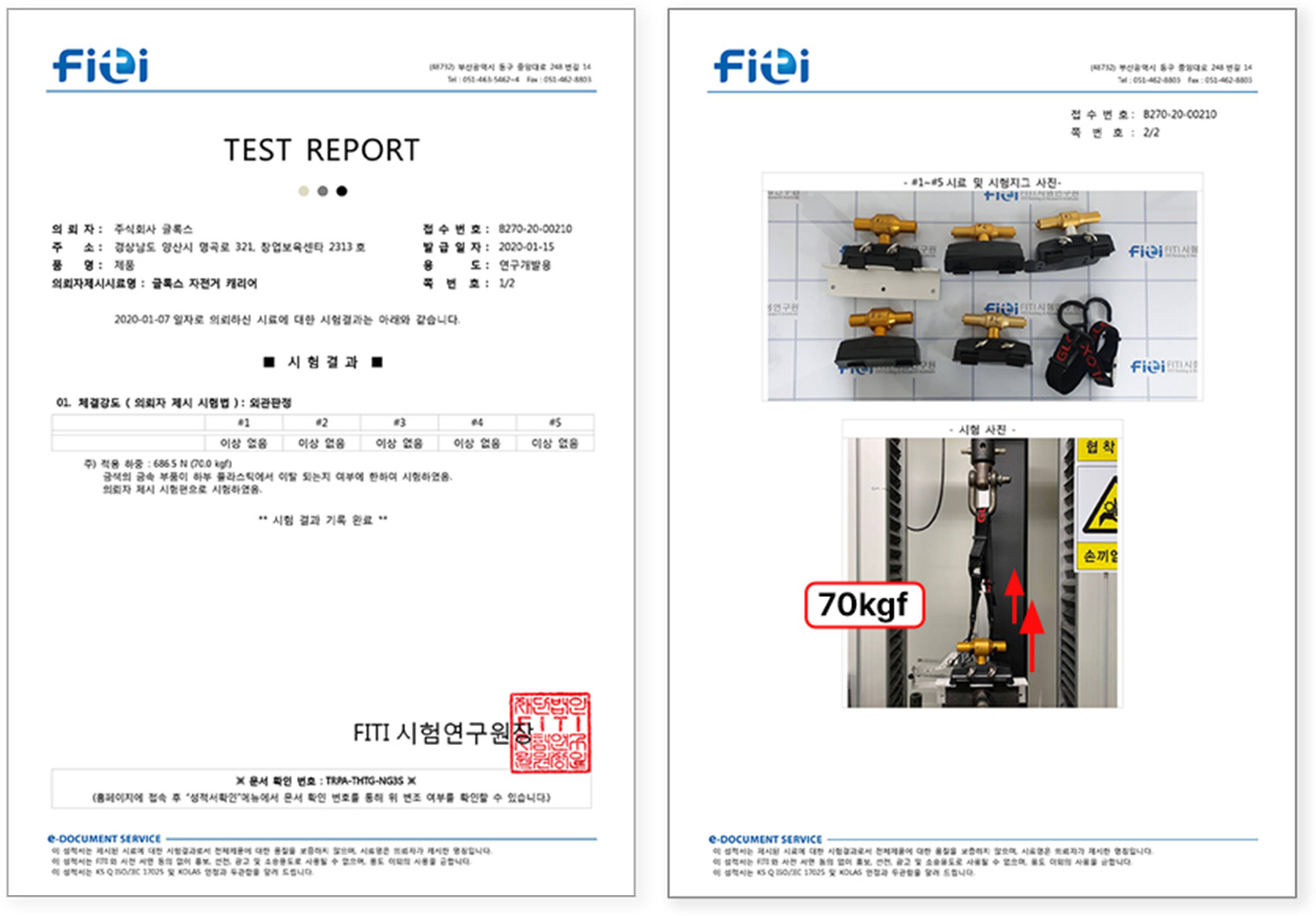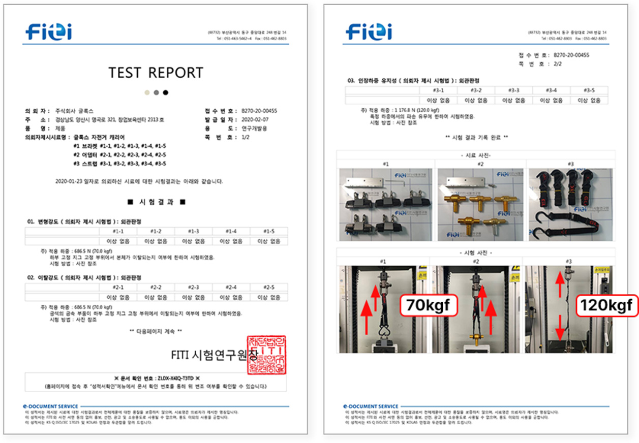 캐리어 본체/어댑터/고리의 변형/이탈강도 테스트